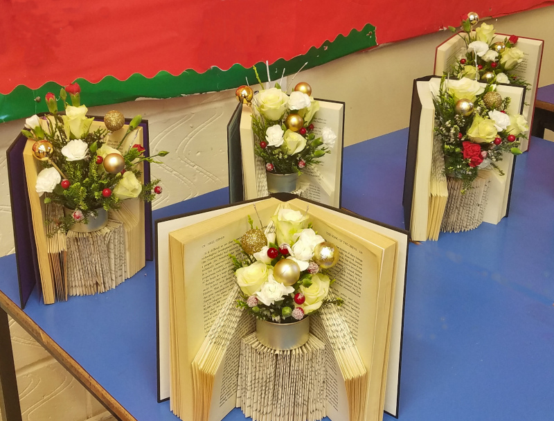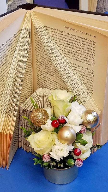 Ockford-Godalming had a "Craft Session" recently when Cheryl showed members how to make a beautiful floral arrangement for Christmas. We were shown how to create a lovely display using hard-backed books - acquired from the charity shops!