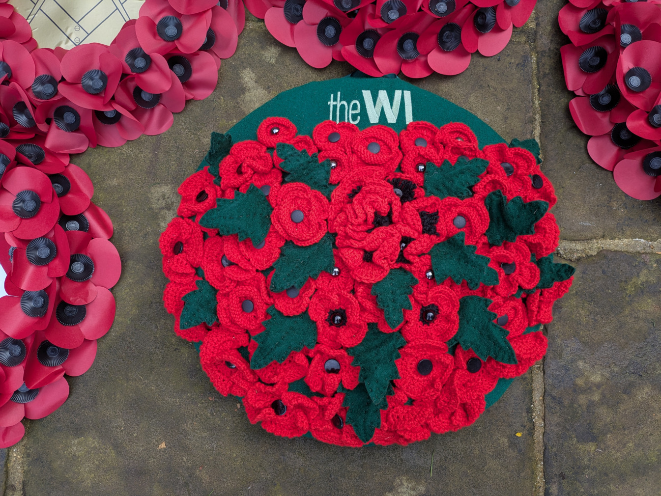 It was a beautifull sunny morning. The wreath was created by our members and is recycled.