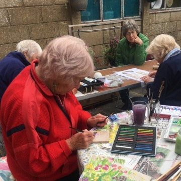 A very enjoyable Tile Painting afternoon was undertaken in Jacky's garden recently. Making beautiful signs for the new Art Studio.