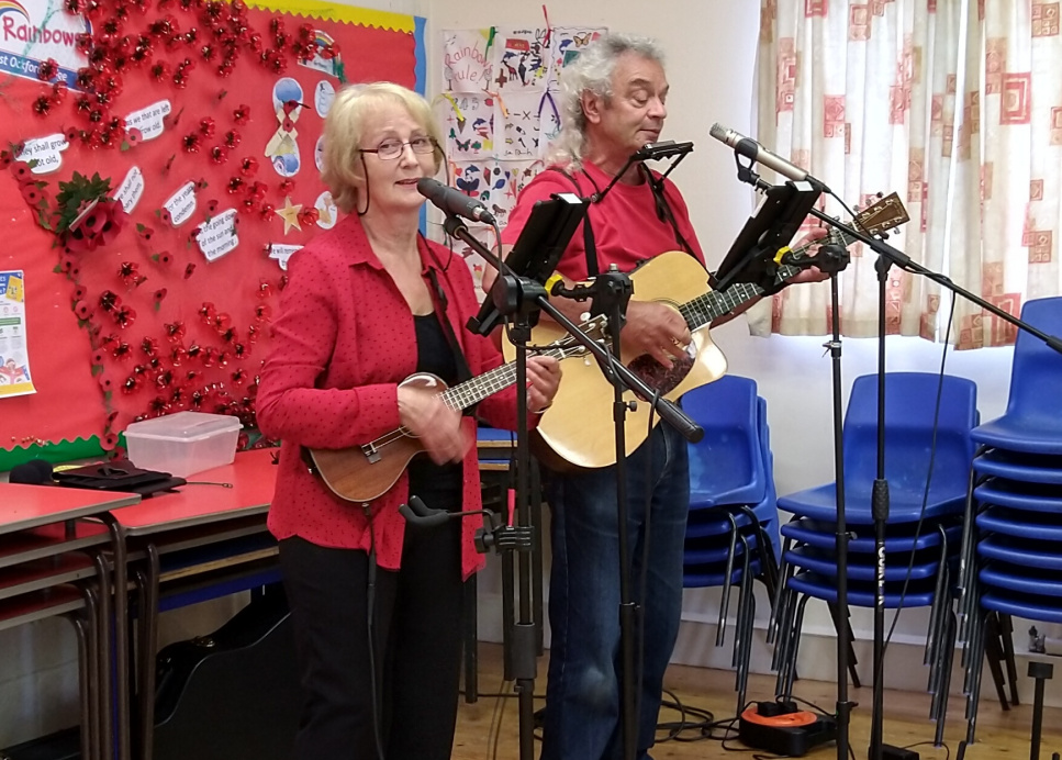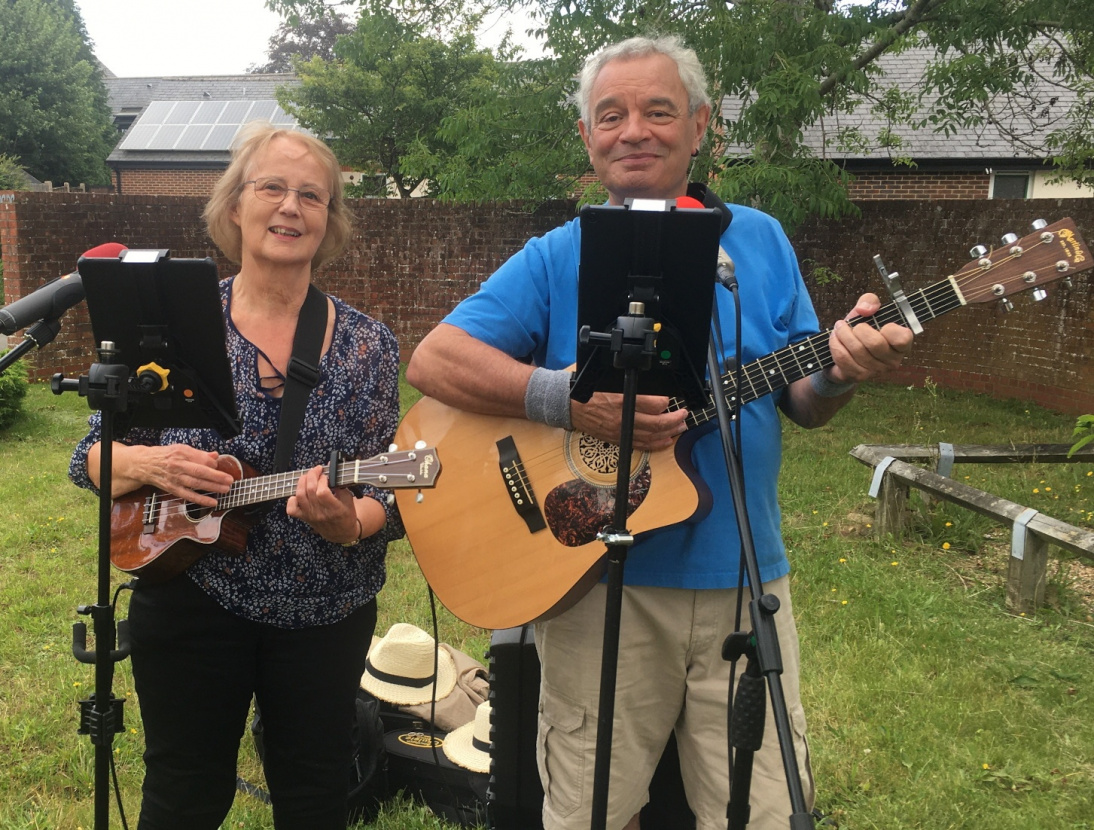 We had our first W.I meeting this week, sitting under the Old Oak Tree! Members came with their own camp chairs, a mug and cakes. Later we were entertained by the duo "Kissing Frogs" (Pictured) - from Folk to Rock songs which was great fun.