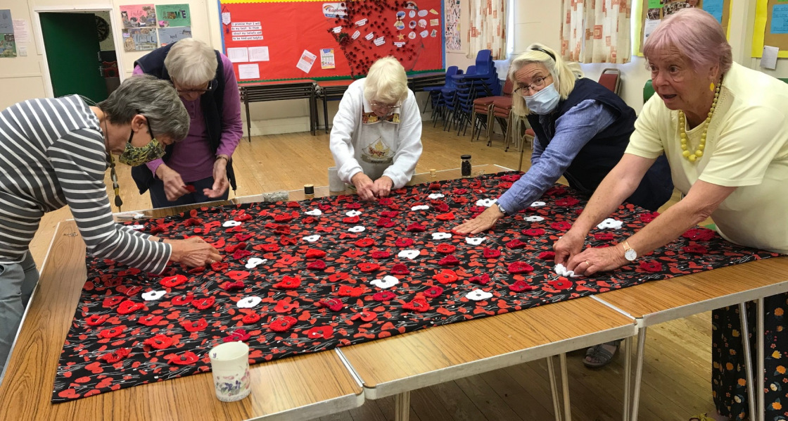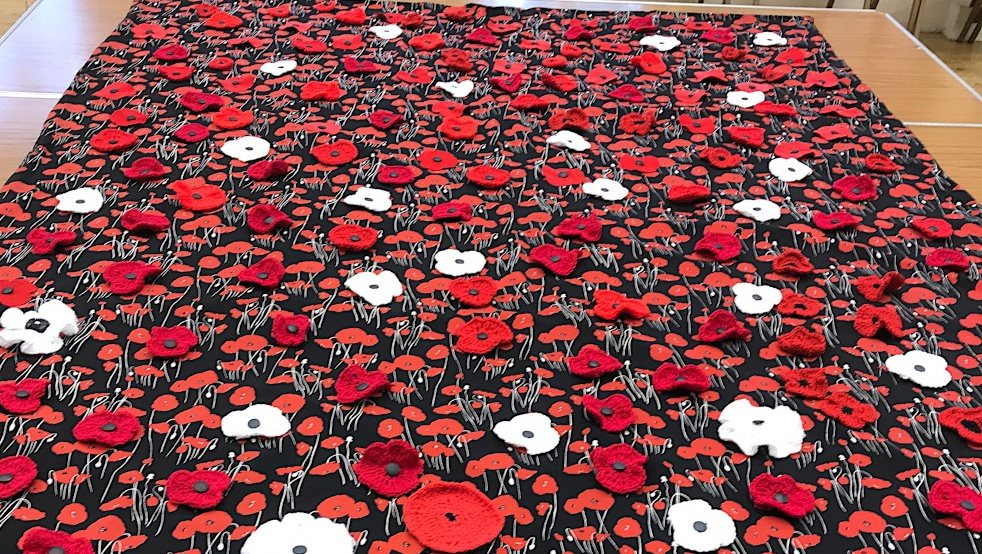 Our "Poppy Project" is begining to take shape (see above) with the crochet and felt poppies being sewn onto a poppy background by some of our "Stitch & Chat" team. More poppies are still needed before this project is complete, so keep making!