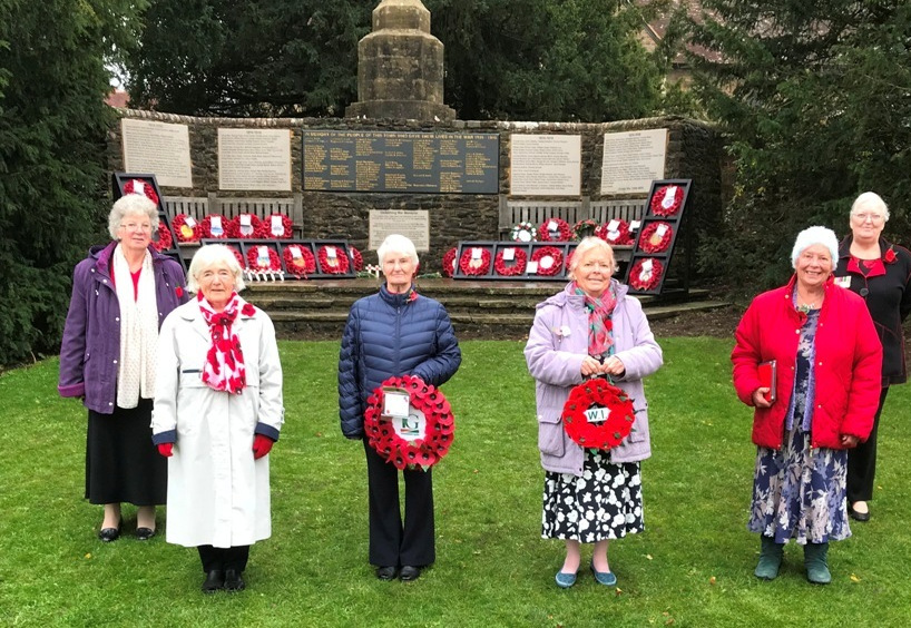 Ockford-Godalming WI, with members of the Townswoman Guild laid poppy wreaths at the Godalming War Memorial on Remembrance Sunday 8th November. The crochet poppy wreath was made by Maggie Maile.