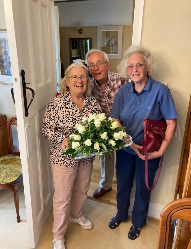 Wendy delivering a beautiful arrangement to Alan and Monica on the occasion of their Diamond wedding anniversary.